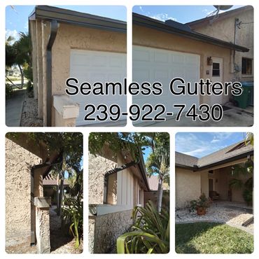Bronze Gutters with White Downspouts for Sorenson Construction. Cape Coral Seamless Gutters by Chosen Home Improvement.
